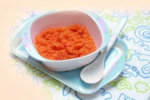 做法:胡蘿卜切片放水中,淋入香油,煮至軟爛,用小勺壓成泥。