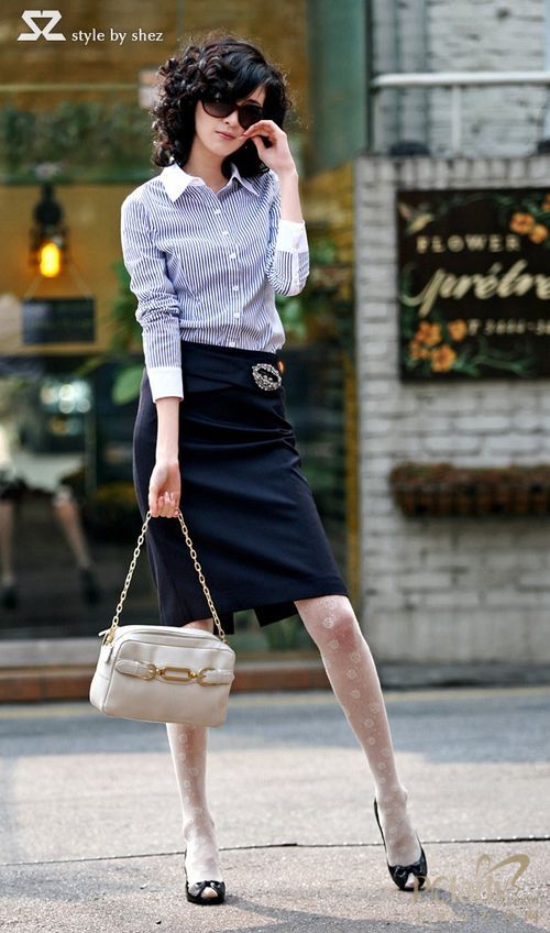 為了擺脫冬日的臃腫,春日當(dāng)然是以炫麗為主題啦。因?yàn)橥ǔEr衫色彩方面都是以白色或是黑色為主,所以并不能做成炫麗的效果。所以從鉛筆裙下手就能造就一個(gè)炫麗的春日風(fēng)情啦。